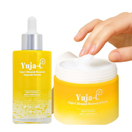 🎨 3W CLINIC Yuja-C Blemish Recovery Ampoule Serum 100ml, Recovery Cream 110g