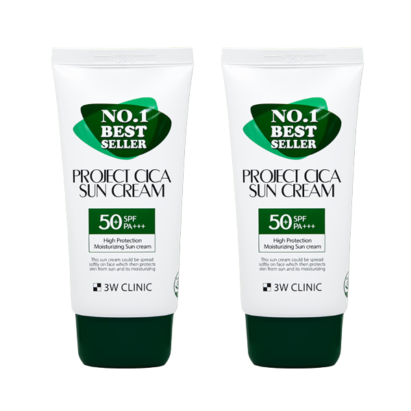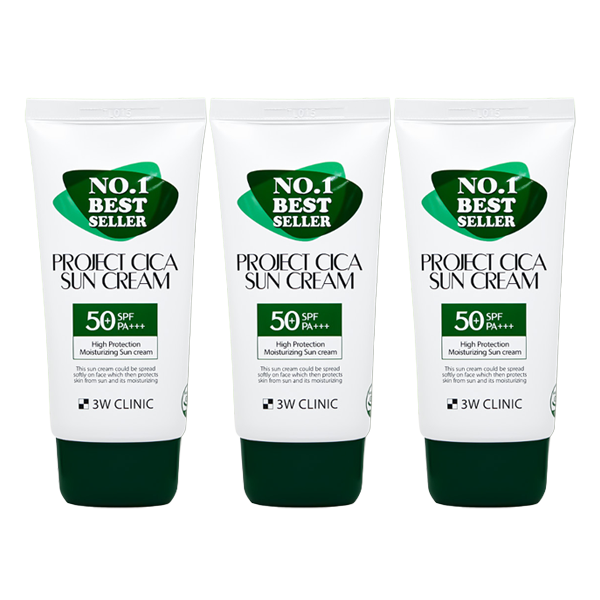 3W CLINIC Project Cica Sun Cream is a high-protection daily sunscreen formulated with Centella Asiatica extract to help soothe sensitive skin while shielding it from strong UVA and UVB rays.