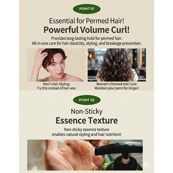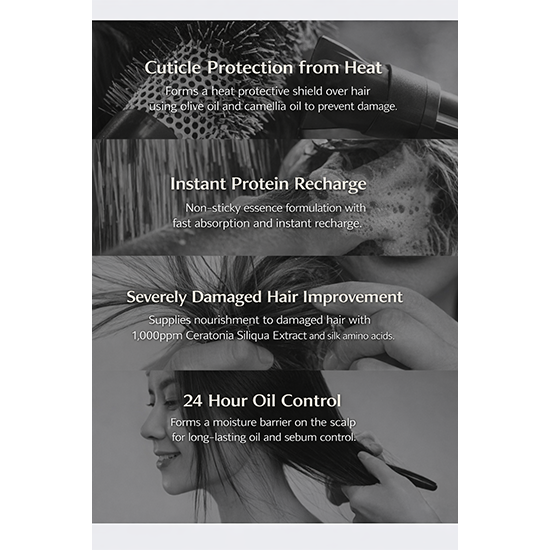 Enriched with olive oil, camellia seed oil, keratin, and silk amino acids, this hair essence helps support hair strength, improve shine, and maintain moisture balance.