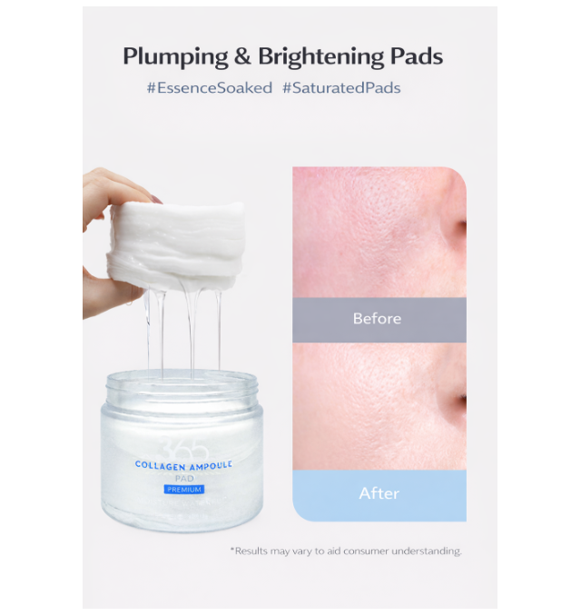 3W CLINIC 365 Days Collagen Ampoule Pad is an all-in-one daily skincare pad infused with collagen ampoule essence to deliver moisture, radiance, and elasticity in one simple step.