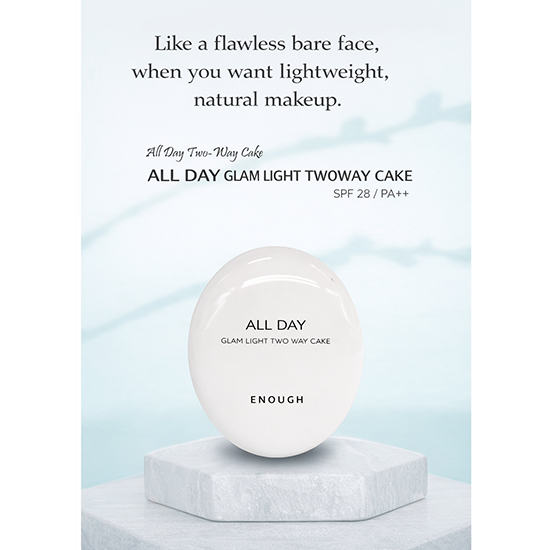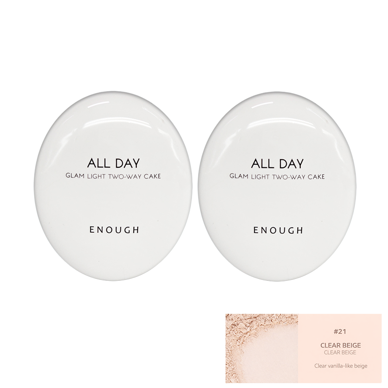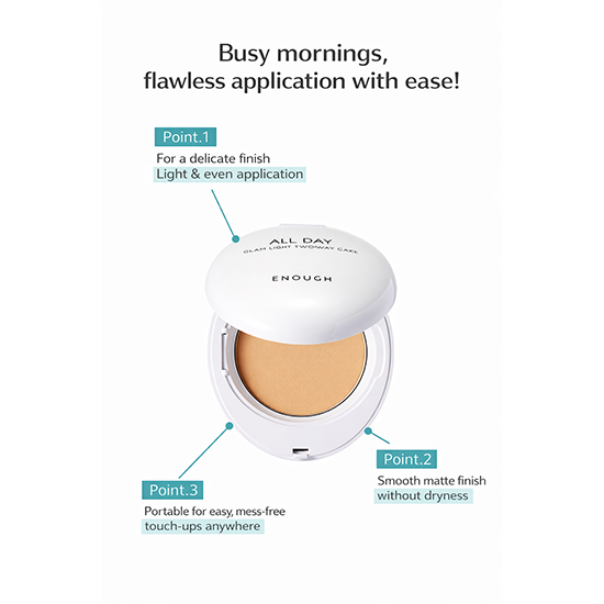 A lightweight two-way cake foundation from Enough, designed to create a natural, flawless skin look with smooth and even coverage.