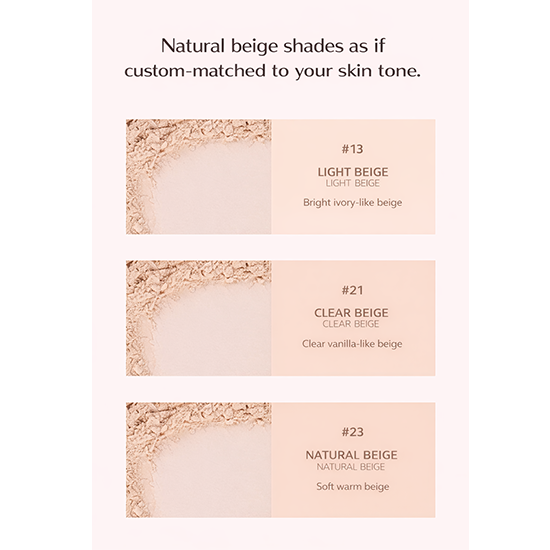 Formulated with fine powder particles and pearl base, it enhances natural radiance while maintaining a soft matte finish without dryness.