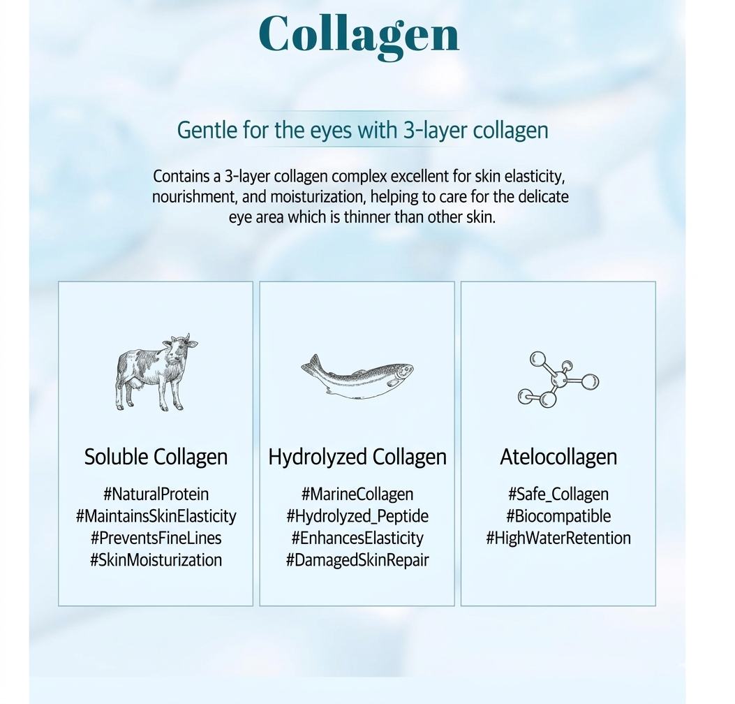 • Collagen + hyaluronic complex — supports hydration and elasticity