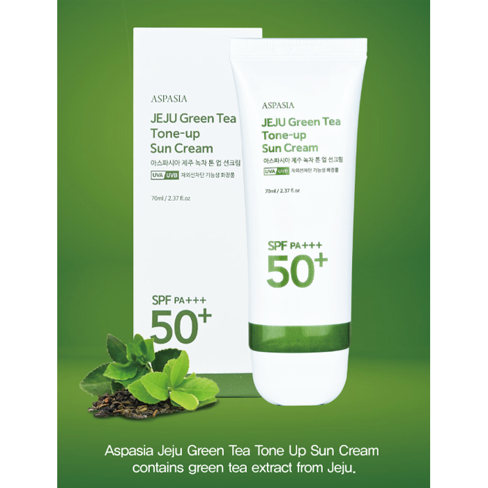 💄 ASPASIA Jeju Green Tea Tone-Up Sun Cream SPF50+ PA+++ 70ml