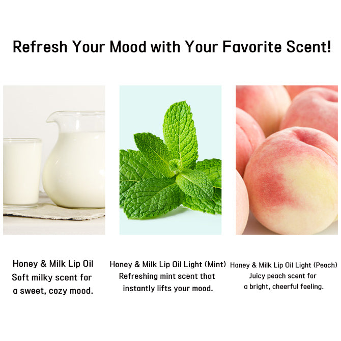 A’PIEU Honey Milk Lip Oil delivers rich, glossy hydration with the sweetness of honey and the softness of milk protein.