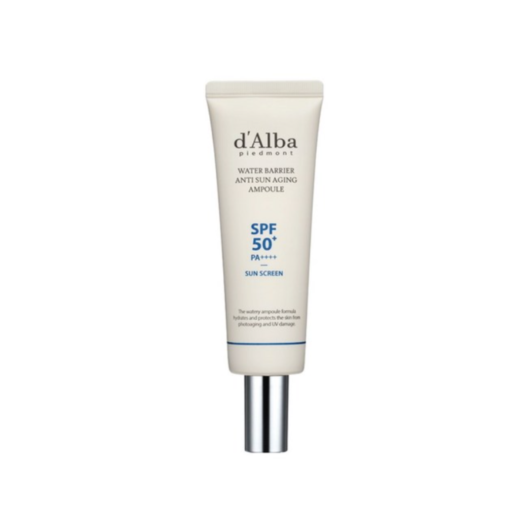 d’Alba Water Barrier Anti Sun Aging Ampoule features a Water‑Drop Formula with 77%* moisture essence that envelops your skin in a transparent, hydrating barrier without stickiness. This ampoule‑type sunscreen delivers skincare benefits—whitening, wrinkle improvement, and UV protection—in one step while imparting a fresh, dewy finish. Its vegan, low‑irritant formula is gentle enough for the whole family.