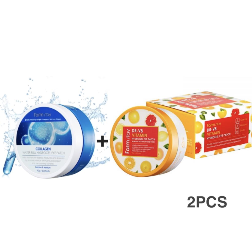 đ§´FARM STAY Collagen Water Full Hydrogel Eye Patch 90g + Dr. V8 Vitamin Hydrogel Eye Patch 90gÂ