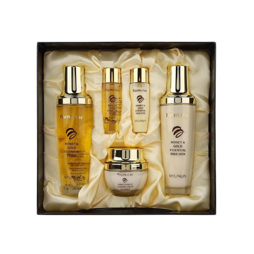 🧴 FARM STAY Honey & Gold Essential Toner, Emulsion, Cream SET