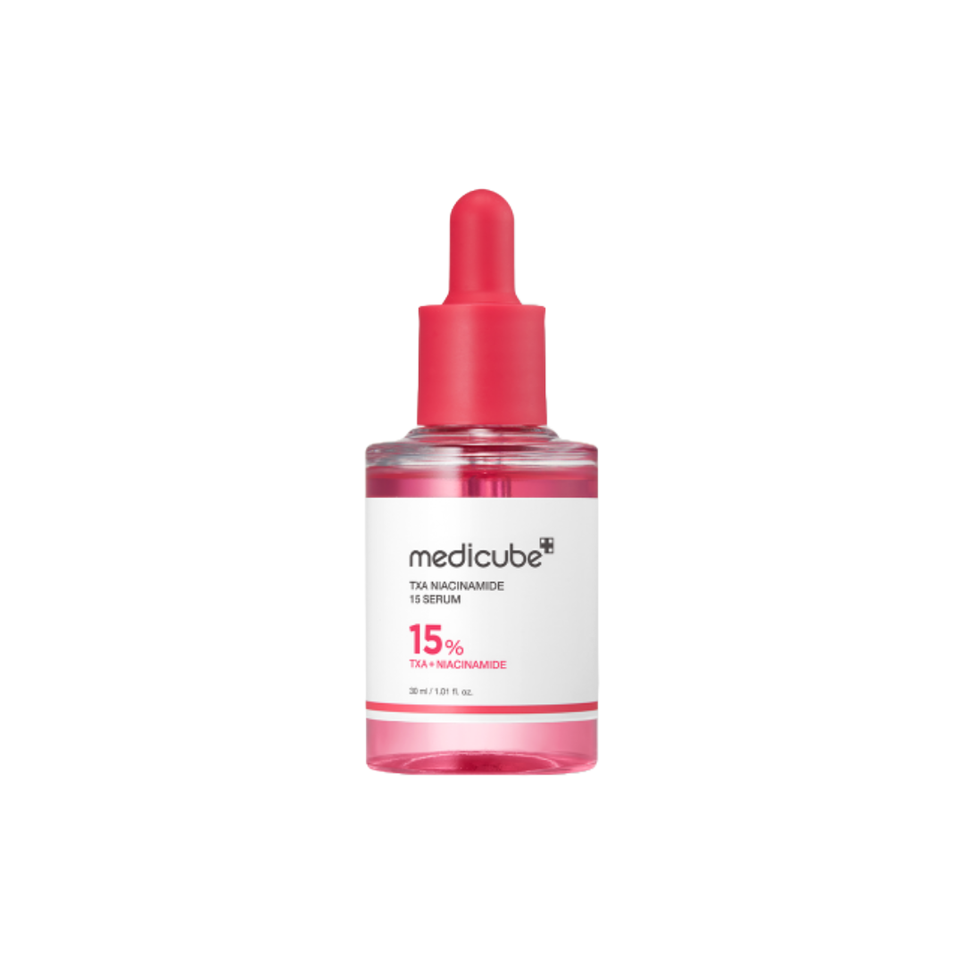Medicube TXA Niacinamide 15 Serum combines Tranexamic Acid (5%) and Niacinamide (10%) in a step‑by‑step melanin‑targeting system to deliver powerful toning care. This high‑concentration 15% formula works to improve stubborn dark spots and blemishes while brightening and evening out skin tone. Added Albutin (2%) further inhibits tyrosinase activity for long‑lasting clarity, and a synergistic blend of Ferulic Acid + Glutathione ensures gentle, effective brightening suitable for sensitive skin.