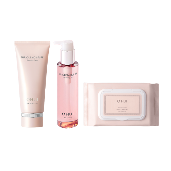 A 3-step cleansing set from OHUI’s Miracle Moisture line, formulated with Chiffon Ceramide™ and plant-derived ingredients.