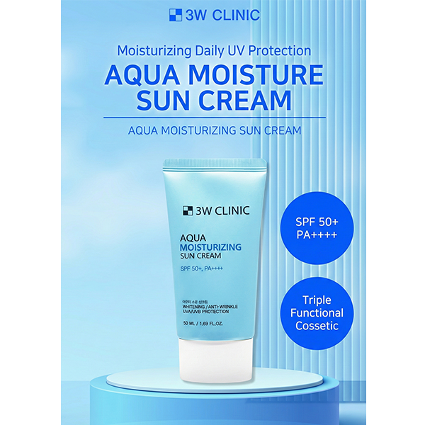 3W CLINIC Aqua Moisturizing Sun Cream is a lightweight, hydrating sunscreen designed to protect skin from daily UV exposure while keeping it moisturized and comfortable.